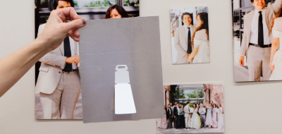 Panels can be mounted directly to the wall for a sleek gallery-style display, or paired with easels for a tabletop look. Easels are a nice add-on but not required.